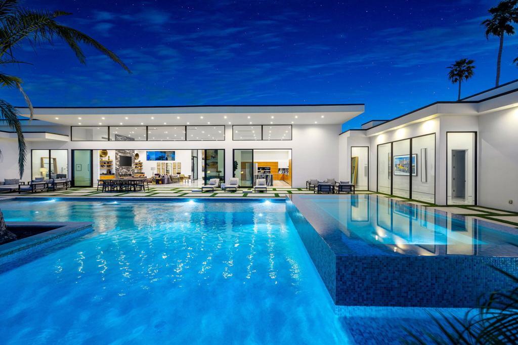 Welcome to Bravo 7, located in the heart of Tamarisk, in Rancho Mirage. This private enclave of seven curated luxury homes by architect James M. McEachern and Developer Bravo Development is now hitting the market for the first time. This luxury residence at Bravo 8 features an oversized pool with two tiled Baja shelves and a step-down bar area with fire pit. A pivoting glass entry door opens to an equally impressive interior with soaring ceilings, walls of fold-away glass doors, gorgeous polished marble imported from Spain, and sleek custom cabinetry imported from Germany and Hansgroge fixtures in all bathrooms and kitchen. A gallery-sized great room with dramatic linear fireplace provides space for grand-scale entertaining that opens to the kitchen, backyard, and the pool and spa. Enjoy 6 ensuite bedrooms and 6.5 baths in 4,850 square feet, including Fleetwood doors and windows, Miele appliances with built-in coffee stations, smart-home lighting and communications systems, primary suite walk-in closets with built-in Italian cabinetry, illuminated bath mirrors, solar power and 3-car garage with epoxy flooring. This prestigious residential collection is moments from The Ritz-Carlton Resort & Spa, Sunnylands, Palm Springs International Airport, and luxury shopping and fine dining.