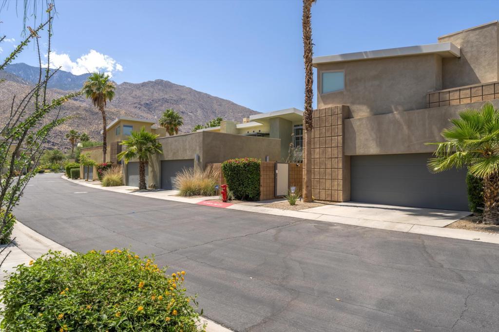 Location, design, amenities...finally the one you've been waiting for at Oceo. Located in the desirable Twin Palms neighborhood in South Palm Springs, this mid-century inspired town home has all the right elements. The area couldn't be more convenient, with Koffi just steps away and some of Palm Springs' best restaurants and shopping down the street. Enter the property through the private gate and into your outdoor living space featuring a custom pool, spa and living/dining areas with unobstructed mountain views for a backdrop. The open concept main level includes generously proportioned entertaining spaces in the great room and direct access to the pool/spa. Cook's kitchen, large island and dining area are all within reach. High ceilings and clerestory windows create a sense of drama, highlighting the two-story fireplace and gallery walls. The spacious second-floor primary bedroom suite overlooks patio and pool and feels like a retreat. A half bath, back patio, laundry room and two-car garage complete the main level. Upstairs (above 2-car garage) is a spacious guest casita with wrap around mountain views and a view deck perfect for that sunset cocktail or morning coffee. Mountain vistas are also featured. A perfect sense of privacy for homeowners and guests. Fee simple (you own the land), whole house water filtration system and owned solar too! This is the one!