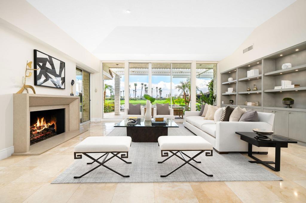 Step into luxury living with this updated contemporary 4,929 sqft home boasting breathtaking lake, fairway, and mountain views! A grand double glass door entrance welcomes you into the expansive living space featuring high ceilings, recessed lighting with Lutron controls, and travertine flooring. Indulge your culinary senses in the remodeled chef's kitchen with a raised ceiling, pristine white quartzite countertops, custom cabinets, stainless steel appliances, extra drawer dishwasher, working chill room and stunning views. The spacious master suite offers a cozy sitting area with fireplace, dual bathrooms, and two large walk-in closets. Hosting guests is a breeze with two generous guest bedrooms; one includes its own living room. Outside, entertain or unwind in style by the private pool and spa area, complemented by captivating views and ''cooling'' misters. Pool features a rectangular sun shelf at its entry, great for kids or simply lounging. A secluded side yard provides a tranquil escape under a pergola. Recent upgrades include a leased Solar system ($438/mos) with 3 Tesla backup batteries, driveway pavers, refreshed exterior pergolas, new pool equipment (heater, salt system, lights & control panel), and more. Located in coveted Morningside, just minutes from Palm Springs and El Paseo, this home offers unparalleled luxury living! Easy and a pleasure to show.