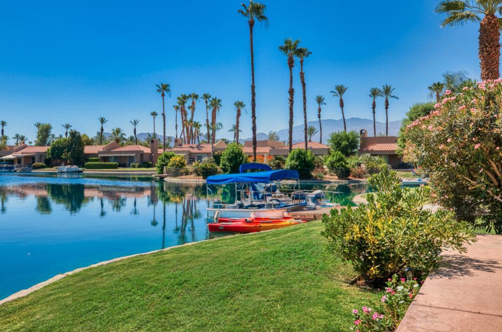 PRICE IMPROVEMENT of $729,000! This amazing 3 bedroom/2.5 bath/1,813 sf condo sits on the western edge of the south lake with unobstructed views of the lake's expanse. It is a peaceful oasis for those seeking a serene lifestyle. This is like a bird sanctuary. Lake Mirage residents alarm clocks are the sounds of swans, geese, ducks, heron, or coots. Nature lovers are in heaven here. Each home is on the water and each share boat docks for electric boats, kayaks, paddle boards, and boats.This charming home has ample room for company, and both the primary bedroom and living room look out onto the lake and provide breathtaking views of radiant sunrises. The primary bathroom has been upgraded in black and white subway tile, a spacious walk-in shower, closet, double vanity, and separate toilet room. Solar tubes light up many of the areas. The 238-home community's amenities include eleven pools and spas, a clubhouse for social events, a conference room, billiards room, and fitness center. Overlooking the clubhouse patio is a pitch & putt, tennis and pickleball courts and yacht club pontoon boats for those members who would like to have access to use a boat without owning one. Lake Mirage is located a short distance away from grocery stores, restaurants, Eisenhower Hospital, and is a short drive to the infamous El Paseo Shopping District. 75 Lake Shore Drive is more than just a home - a nature lifestyle in the great town of Rancho Mirage