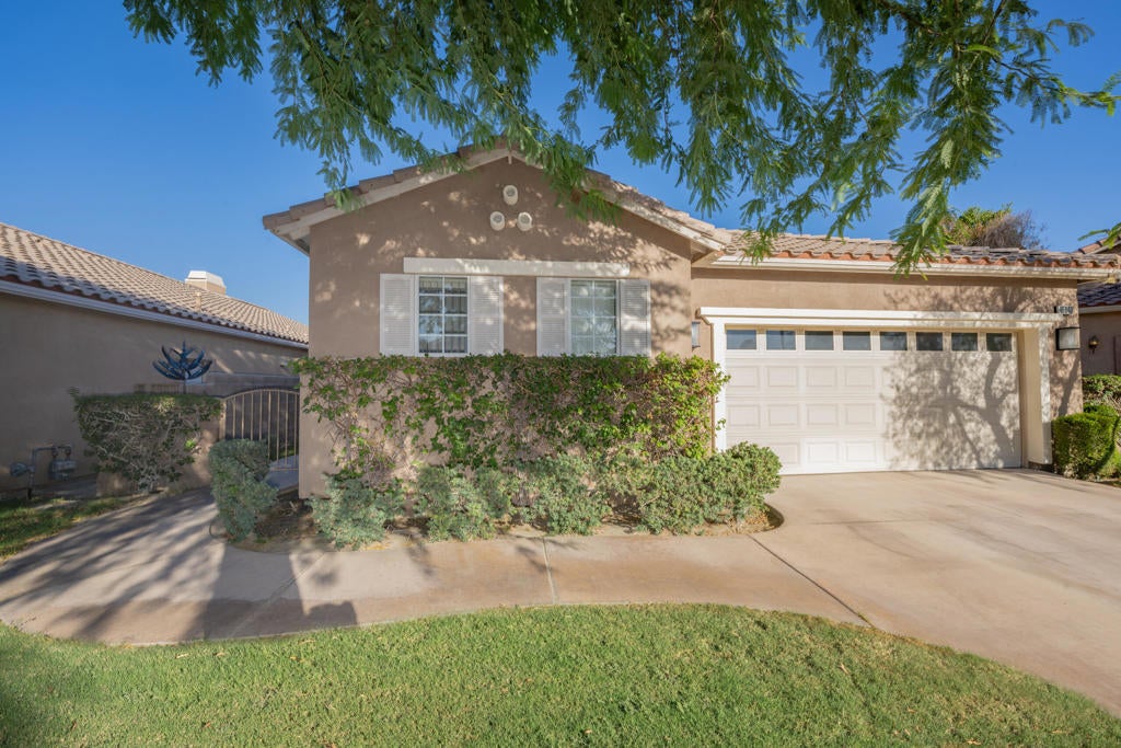 OPEN HOUSE Saturday Jan 11th!LOW 3.25% FHA FINANCING AVAILABLE!Experience the good life in this 4-bedroom family home at Indian Springs Golf Club at Big Rock! This home is perfectly situated, just steps from the golf clubhouse and a short walk to Amelia Earhart Elementary, John Glenn Middle, and La Quinta High School. Plus, it's only a few blocks from town! Indian Springs is the only gated golf course community close to these excellent schools, Costco, Home Depot, movies, and all the fantastic shopping and dining on Highway 111 in La Quinta. This Venice plan features a private courtyard entrance with a low-maintenance yard, perfect for pets or family, and even includes a climbing wall for kids or strength training! Inside, you'll find an open and spacious great room with an efficient kitchen, complete with granite countertops and built-in appliances, offering easy access and views of the rear patio and yard. The home includes 4 bedrooms, one of which is a guest casita with a private bathroom and courtyard views. The master suite, located at the rear of the home, features a large sliding glass door with patio access and its own wall-mounted A/C unit for a cool breeze on warm nights. Residents enjoy low-cost HOA fees that cover fiber optic cable TV, internet, two community pools, spa, fitness centers, front yard maintenance, and two main entrances staffed 24/7. Be sure to view the VR tour!