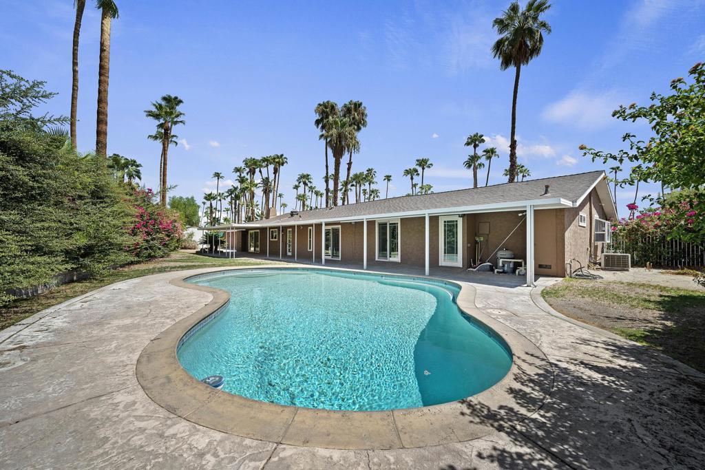 There's room for everyone in this sprawling one level home in South Palm Springs! Fall in love in Los Compadres...Welcome to this exquisite one-level estate, perfectly blending luxury and comfort in a prime South Palm Springs location. With 4 spacious bedrooms, office, and 3 full bathrooms in the main residence, plus a separate 2-bedroom guest quarters--this property offers unparalleled versatility.Recent updates include gleaming hardwoods floors, high end carpet, 5 ton A/C units (2017) and two water heaters (2018) Large kitchen with tons of counter space and ample cabinetry.Spacious living areas with beautiful fireplace and seamless flow to outdoor oasis.Serene main bedroom with ensuite bathroom and private access to the pool.Private guest quarters with kitchen, laundry, and bathroom - perfect for in-laws or guests.Sparkling pool and tranquil yard with shed for storageAdditional features:One-level living for effortless entertaining and everyday easePrime location in South Palm Springs, close to shopping, dining, and outdoor recreationPlenty of natural light and stunning mountain viewsYou own the land!This incredible home offers the ultimate desert lifestyle. Don't miss this rare opportunity to own a piece of paradise!Must see to appreciate--don't miss out.