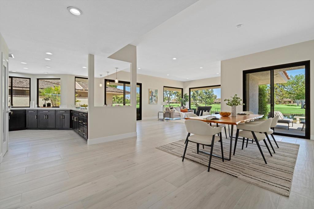 Come see this fully remodeled and expanded 3-bed, 3-bath Augusta floor plan, perfectly situated Lakeside on the Desmond Muirhead-designed 15th Fairway of The Springs Golf Course. The moment you step inside, you're greeted by breathtaking views that showcase the best of The Springs. Expansive walls of glass flood the home with natural light, highlighting its cool, comfortable, and modern design. The chef's kitchen boasts soft-close cabinetry, quartz countertops, a breakfast bar, top-tier stainless steel KitchenAid appliances, and ample storage. The open-concept layout effortlessly connects the formal living room and the family room, each featuring its own fireplace. Begin your mornings on the patio off the spacious primary suite, where you can watch the mountains awaken with the sunrise. The home features all-new porcelain plank flooring throughout. A guest bedroom with a private courtyard entrance offers a perfect retreat for visitors, while a dedicated office space ensures you can work from home or stay connected in your sanctuary. This rare find. The Springs community offers an unparalleled lifestyle, with proximity to Eisenhower Medical Center, top-tier shopping, dining, and entertainment, plus easy access to I-10. The Springs, Rancho Mirage--it's where you be-long.