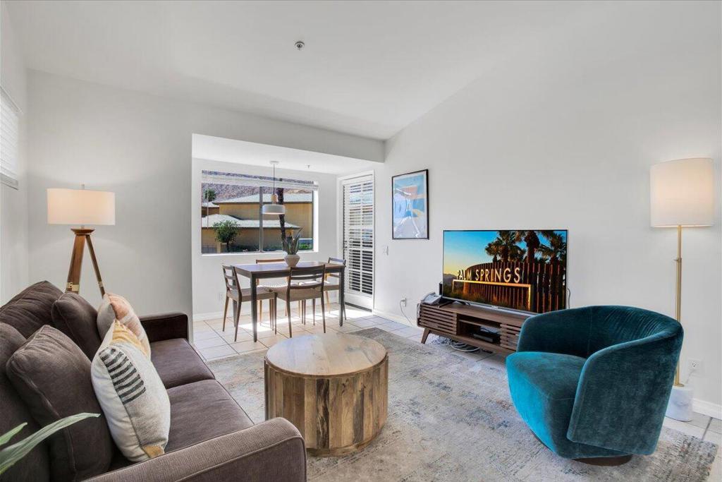 At Last! The home of your dreams is awaiting its new owner! Rarely will you find a condo with such phenomenal views and superb location. Located in the highly desirable community of Plaza Villas across from the Agua Caliente Casino and only a few blocks from Downtown Palm Springs, this recently updated light-filled one bedroom one bath second floor condo is truly one-of-a-kind! This home features spacious living room and bedroom, freshly painted, high vaulted ceilings, cozy bright kitchen open to the living room highlighted with newer appliances, and HVAC system installed in 2024. Situated off of the bedroom is a tiled balcony with iconic mountain views. It is absolutely perfect for your morning coffee or a cocktail in the afternoon. In addition, there is an indoor laundry with an updated washer and dryer and assigned covered carport. Plaza Villas community is one of a very few with a minimum of seven days rentals allowed. This condo is a perfect 10!