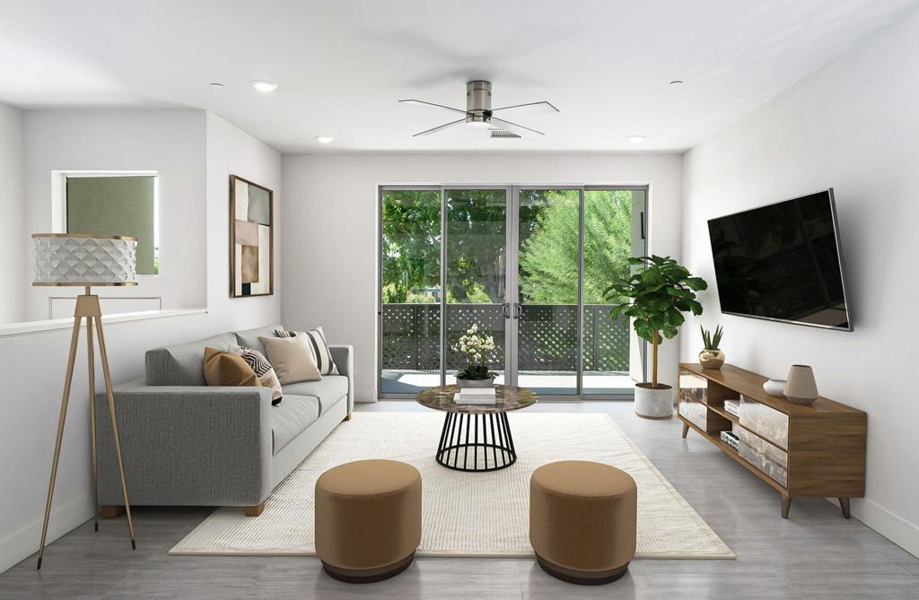 Live the resort lifestyle at this modern newer construction condo, just a short distance to Palm Springs uptown design district. This home is a south-facing upstairs unit with lovely tree-top and panoramic views of the mountains to the south and west. A few of the interior features are high ceilings with exposed beam, FULLY PAID SOLAR (10 panels, 2.9kW) low-E glass, tankless water heater, and brand-new carpet in both bedrooms. With in the gated community of 64@the Riv you will find mature lush landscaping that surround a 60-foot resort style pool, spa, & covered seating area with fire feature. Additional community features are electric car charging stations, gas BBQ's, and a gated doggy park. 30 day minimum on all rentals, per community guidelines. You own the land (fee simple) and the HOAs are low.