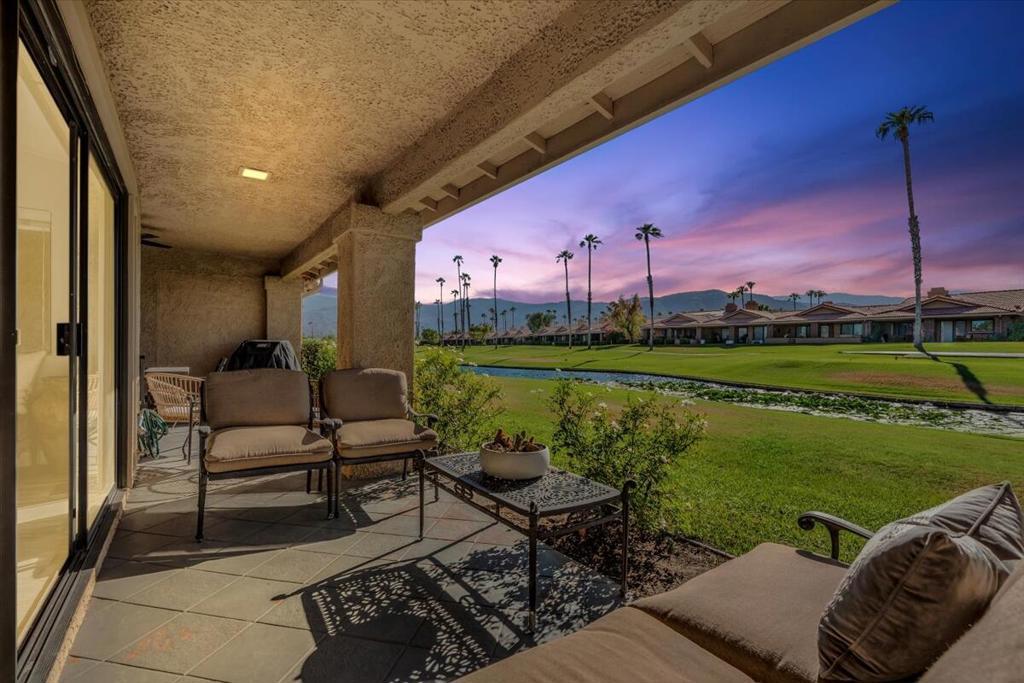 Discover your dream home at 35 Camino Arroyo South, a stunning home featuring magnificent mountain and lake views, located in prestigious Chaparral Country Club. This property is ideally situated right on the golf course in a prime southwest-facing location. This beautifully remodeled residence boasts a gourmet kitchen with quartz countertops, and a large island perfect for entertaining. The inviting living room features a cozy gas fireplace and soaring vaulted ceilings, with direct access to a covered patio for outdoor relaxation. Retreat to the spacious primary suite, complete with a large walk-in closet and a luxurious bathroom featuring dual vanities, quartz countertops, modern tile, a soaking tub, and a glass walk-in shower, illuminated by a skylight. The guest bedrooms are bright and airy and offer generous closets and sliders which lead to the central atrium. Additional highlights include stylish ceramic wood tile, recently installed carpet, ceiling fans throughout, an inside laundry closet, updated water heater and HVAC, and a two-car garage. Just steps away, enjoy the community pool, ideal for relaxation and socializing. Chaparral Country Club offers an active desert lifestyle with an 18-hole executive golf course designed by Ted Robinson, tennis and pickleball courts, 21 pools and spas, a clubhouse, lively bar, and a delicious restaurant. Nearby, indulge in fine dining and shopping on El Paseo, along with entertainment at the McCallum Theatre and Acrisure Arena