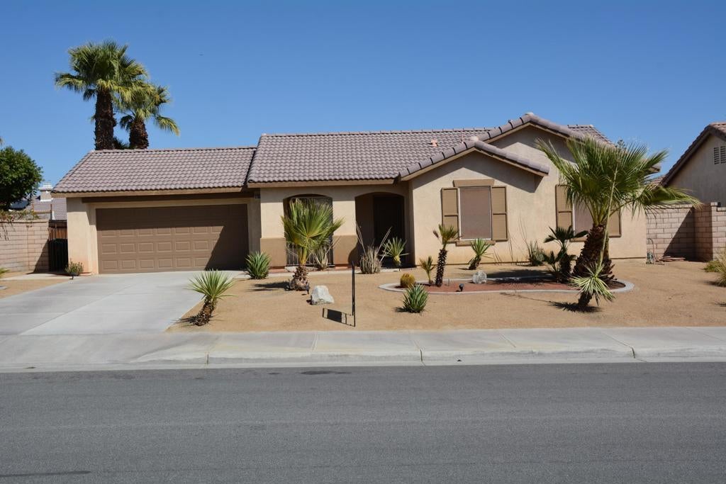 Location, location, location. Buy before cortina is built.Great floor plan, well taken care of home located in N. Palm Desert. Home has tiled floors thru-out, two car garage, granite counter tops, plantation shutters , stainless steel appliances , newer A/C, indoor utility room, extremely low utility bills( solar ). Huge covered patio approx. 10x40. Desert landscaping for low maintenance. This opportunity won't last long.