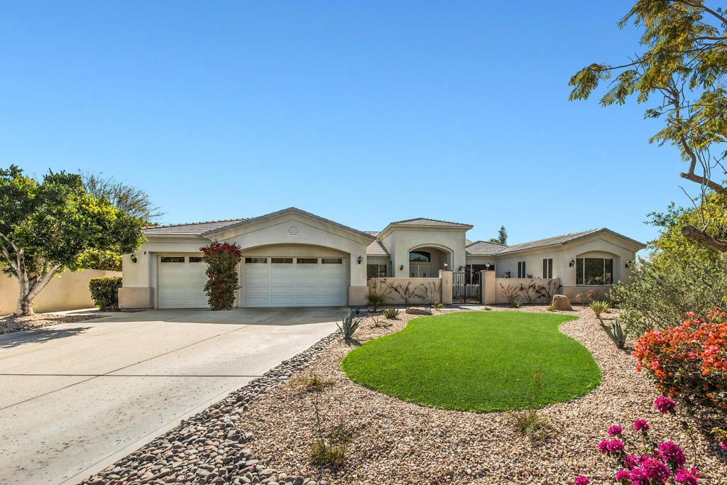 Centrally located in the heart of the highly sought-after community of Rancho Mirage is the regal and impressive gated enclave of Versailles. This semi-custom, 4456 SF Regent Plan sits on nearly 1/2 Acre. This gorgeous home has 5 beds w/ensuite baths with one of the bedrooms connected to its own separate living space. Enjoy the luxury of a beautiful formal entry with a spacious living room, custom built-in bookcases surrounding the fireplace and sunken wet bar. This home has a formal dining room for your 'special' occasions. The open concept great room, casual dining and kitchen is perfect for entertaining. The kitchen includes a large island, a walk-in pantry, plenty of granite countertop space and lots of storage with convenient slide-out drawers. The Master Suite includes a spa-like bathroom with a large walk-in closet. Outside you're welcomed by a large covered patio w/retractable awning... perfect for outdoor dining. Enjoy the resort style pool/spa. The large open space backyard is perfect for any outdoor activities you desire. Enjoy the benefits of low HOA's in a gated community with numerous tennis and pickle ball, basic cable/internet, electricity provided by IID all surrounded by greenbelt/park-like areas perfect for the avid walker or leisurely strolls. Close to shops, restaurants, schools and the Eisenhower medical facility, this home is ideally situated for those seeking a grand primary home or a wonderful desert retreat. Seller encourages backup offers
