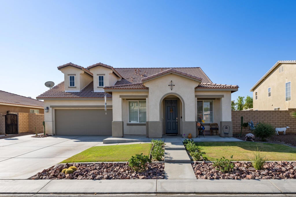 REDUCED, AMAZING VALUE! BUYER FAILED TO PERFORM and sellers have replacement property ready to close! Discover this spacious 2,850 sq. ft. 5-bedroom home in Talavera, a premier family community in north Indio. Conveniently located within biking and walking distance to Shadow Hills High and Desert Ridge Middle Schools, Talavera is a sought-after neighborhood known for its excellent location near schools, shopping, and major travel routes. Once inside the gated community, you'll find a well-planned neighborhood featuring greenbelt parks, picnic areas, and open spaces that families love.This spacious home boasts ceramic floors, updated bathrooms, and a beautifully designed kitchen with slab granite countertops and a center island--ideal for family gatherings, whether for breakfast or winding down after a day of outdoor fun. The main floor includes the primary suite along with bedrooms two and three, with the third bedroom offering versatility as a professional office, den, or gaming room. Upstairs, two oversized bedrooms and a shared bathroom make the perfect space for older children or additional play areas.North Indio is one of the valley's fastest-growing communities, with new shopping centers and services nearby. Plus, it's just a short drive from La Quinta, Palm Desert, and Palm Springs. Once you explore Talavera and see this home, you'll love it!