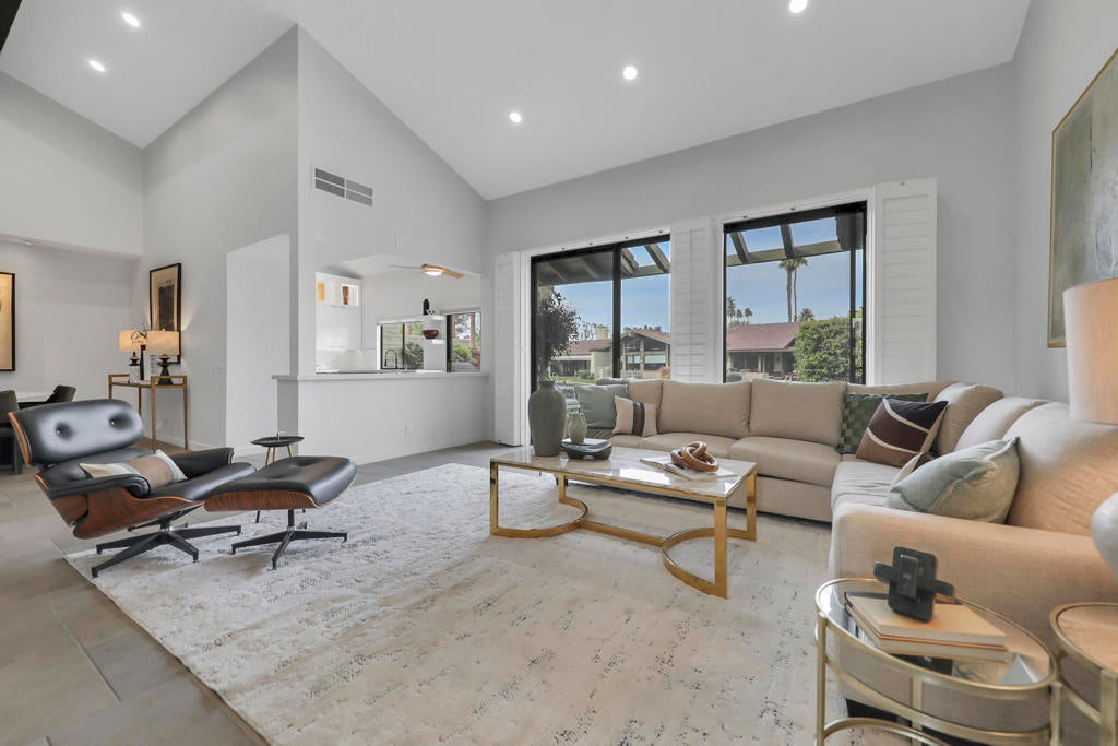 Don't miss this incredible opportunity to own a waterfront property in a prime California location! Imagine relaxing on your back patio, enjoying serene water views complemented by the soothing sounds of bubblers and waterfalls.This beautifully upgraded condo is nestled in a private golf course community, just a short walk to the clubhouse, fitness center, and a resort-style pool and spa. With over 2,100 square feet, this home offers flexibility with 2 bedrooms plus a den, or you can easily convert it to 3 bedrooms. Each bedroom features its own ensuite bathroom, plus a convenient powder bath for guests. The Modern Kitchen boasts custom cabinetry with a contemporary design, featuring warm wood grain accents and glossy white upper cabinets. The impressive 5-burner gas cooktop is a chef's dream, set against crisp white quartz countertops and a muted tile backsplash. Bright and Airy there is Abundant natural light that floods every room, enhanced by custom recessed ceiling features. The luxurious primary bath is a spa-like retreat with elegant sconce lighting, backlit mirrors, and a spacious walk-in shower. An additional closet has been added for extra storage. ( or the guys closet)!The converted atrium provides a bright, custom office area--a $45,000 upgrade!Courtyard entrance features large gray tiles, a contemporary fountain, and low-maintenance plants. Garage has new epoxy floor and cabs. 2 newer Bosch AC units with warranty until 2030.
