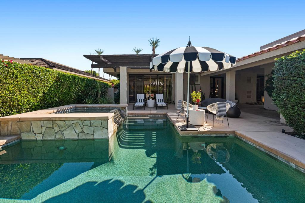 Expansive triple fairway vistas come alive in the morning sun over coffee on the terrace. Golden hour sunsets beyond the San Jacinto mountains set the perfect backdrop for evening cocktails by your pool.This 3 Bed / 3 Bath home offers everything you imagine when envisioning the perfect desert retreat. Graciously proportioned rooms lend themselves to entertaining large groups or quiet time alone. The primary retreat shares the same eastern golf course and Chocolate Mountain views as the living room and wet bar while 2 private guest suites with en-suite baths share separate courtyards and direct access to the private pool and spa with San Jacinto mountain views. Embrace the original touches including vintage mirror accents and classic plantation shutters or remodel to your taste.New A/C, water heater, pool pump, misting system, 57 leased solar panels and 24/7/365 security provide peace of mind whether you choose to be a full-time or seasonal resident.Move in and begin living your best life at the Springs Country Club in a desirable home in one of the best locations in the Springs. 10 minutes to El Paseo shopping; 15 minutes to Palm Springs airport. Adjacent to Sunnylands and the new Cotino community. Perfectly situated in the heart of Rancho Mirage.