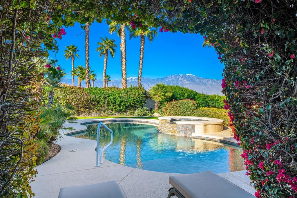 Stunning Mountain and Golf Course Views with Amazing Outdoor Living Spaces and Popular Floorplan. Enter through a gated and tiled courtyard with outdoor living space to dramatic Entry Hall. Formal Living and Dining with 14' Ceilings and an Open Kitchen and Great Room with Spectacular Mountain Views. Gourmet Chef's Kitchen features stainless appliances and granite countertops, travertine backsplash and Island with Breakfast Bar. Great Room features a fireplace and those dead on views of Mt. San Jacinto. Primary Bedroom Suite includes a retreat area, cozy fireplace and a marble filled spa bath with double walk-in closets. 2 guest bedrooms with ensuite baths or optional Office. Updated Powder Room. Outside is a covered outdoor living area, swimmer's waterfall pool, spa, fire pit, built-in BBQ island and multiple terraces with custom landscaping all surrounded by views of Mt. San Jacinto and Mt. San Gorgonio and Gary Player Course views. Legacy ownership includes Mission Hills Country Club social/fitness membership. Furnishings Negotiable - could be turnkey and ready to enjoy for the season. Come home to your Desert Oasis!
