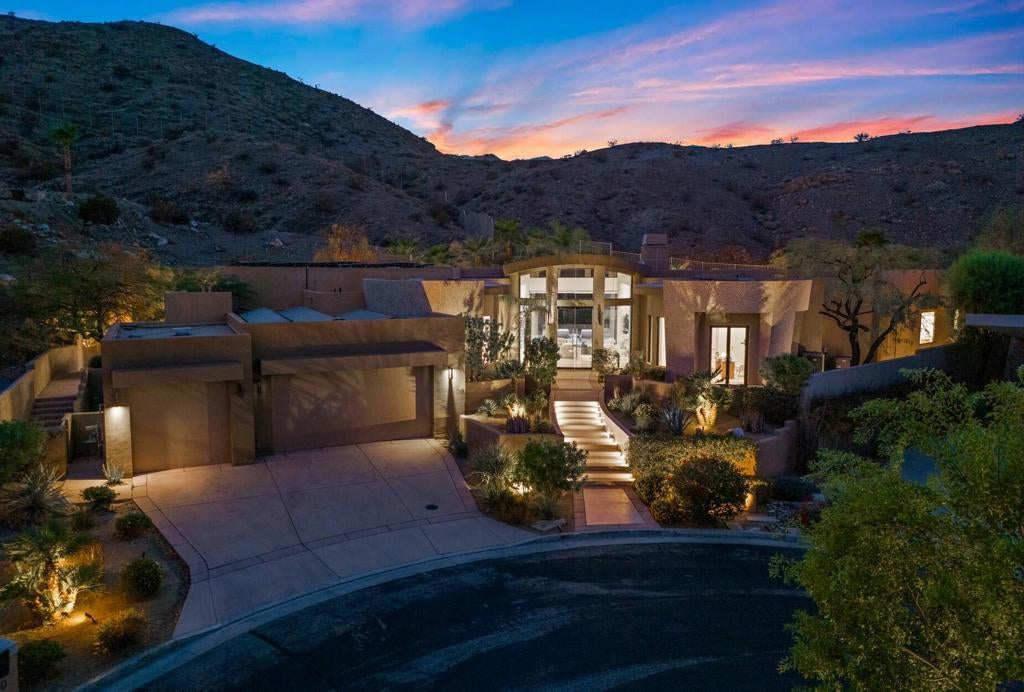 Situated in the premier hillside 24-hour guard gated Rancho Mirage community of Mirada Estates. Resting at the base of the hillside, this custom Solar powered Desert Contemporary offers the ultimate in privacy and indoor-outdoor desert lifestyle living. This gorgeous residence offers both intimate relaxed spaces along with an incredible vibe to entertain. Wood lined arched great room ceiling adds to its unique architecture. Large walls of glass are all that separate interior living from your private pool oasis and dramatic mountain backdrop. Light filled formal living and dining area, 8 seat wet-bar, huge cooks' kitchen with island and breakfast bar and adjacent relaxing media area all open to your waterfall, pool, spa and fire-pit, offering a desert lifestyle you will love. Huge primary suite with fireplace, sitting and media area, spa like bath w/dual walk-in cloth and water closets and adjacent office suite offers unprecedented function, luxury and privacy. Wet-bar is centered for wonderful entertaining. Spacious guest suites opposite side for mutual privacy. Waterfall, pool and spa along with fire-pit offer a dramatic setting both day and evening. Its location offers quiet living until you turn it up. Four-car garage completes this incredible opportunity.