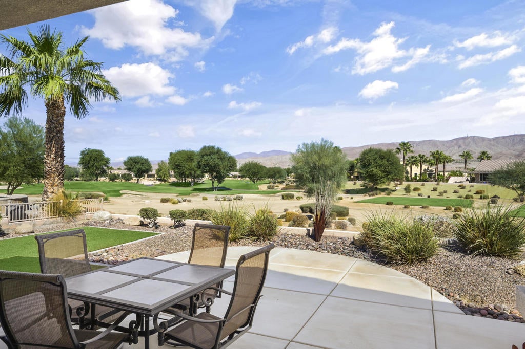 This Avalino model in Sun City Shadow Hills offers a perfect blend of modern updates and tranquil mountain and fairway views. Featuring 2 bedrooms, 2 bathrooms including an office/den, the home is designed for entertaining, comfort and functionality. The remodeled kitchen boasts sleek quartz countertops, a combination of European engineered wood look and white Shaker cabinetry, stainless steel LG appliances, providing a contemporary vibe. The open living area is filled with natural light from large windows surrounding the slider, offering picturesque views of the Chocolate mountains and fairway. The Primary suite includes a spacious custom walk-in closet system, dual vanities, a separate tub and shower, and a large window with beautiful mountain and greenbelt views. The bathrooms are upgraded with granite slab countertops. Entertain guests and family in this energy efficient turf designed low maintenance backyard. Views include critiquing fellow golf enthusiasts from Tee off on the 8th Tee - Par 3 to the green or maybe you prefer to relax and enjoy the natural scenery and sounds of the desert scenery. Living in Sun City Shadow Hills offers a true sense of community. Residents can enjoy two 18-hole golf courses, 9-hole Executive course, indoor & outdoor pools, state-of-the-art fitness centers, and clubhouses that host numerous activities and events. With restaurants, banquet facilities, and a variety of clubs, there are endless opportunities to connect and live an active life