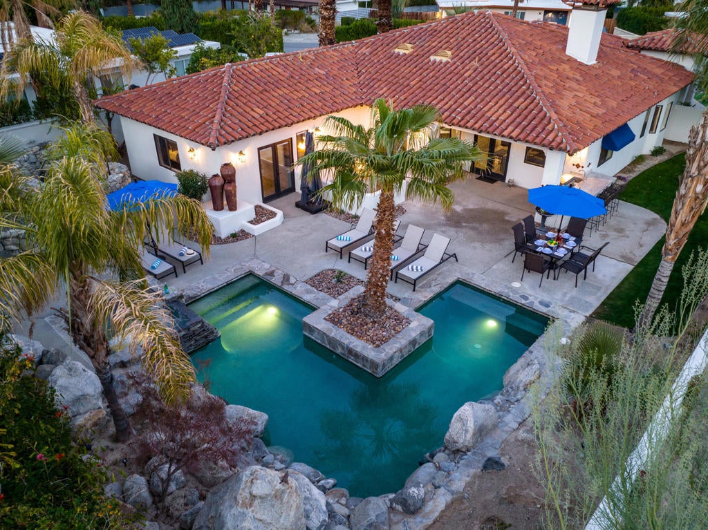 Discover the perfect desert oasis in this beautifully remodeled 3BD/3BA villa, offering stunning mountain views and a serene escape close to renowned Palm Canyon Drive. Ideal for buyers seeking luxury and tranquility, this villa showcases a state-of-the-art kitchen with top-tier appliances, perfect for entertaining or preparing meals at home. Step outside into your private retreat, complete with a sparkling pool, spa, and putting green. The inviting backyard is designed for relaxation and entertaining, featuring a built-in BBQ, dining area, bar, micro mist system and cozy firepit for evening stargazing. Inside, the villa boasts an elegant living room with a grand fireplace, a formal dining area, and a comfortable family room. A sunny nook with breathtaking views of the backyard and mountains makes for a peaceful morning retreat. The spacious bedrooms, each with ensuite bathrooms, dual vanities, and plush finishes, offer ultimate comfort and privacy. This villa is ideally situated in Palm Springs, providing easy access to local dining, boutiques, galleries, hiking trails, and golf courses. Its prime location also allows for quick trips to nearby attractions like Joshua Tree National Park, making it the perfect home for desert living. Furnitshings negotable.