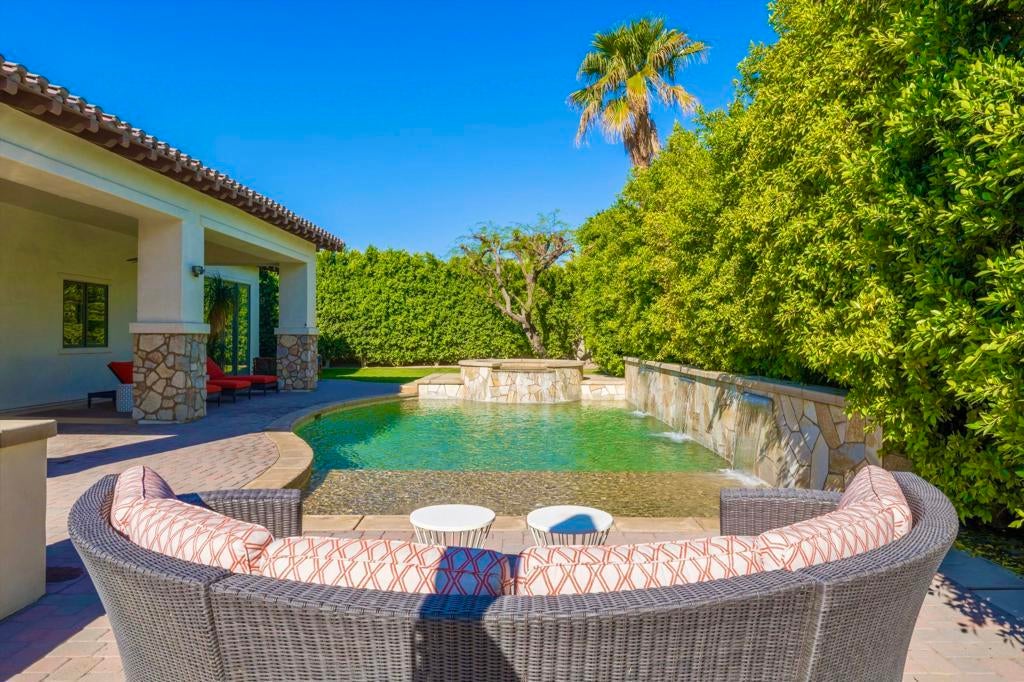 Welcome to this stunning four-bedroom, five-bathroom home, nestled in the highly desirable, gated community of Madison Estates. Recently updated with fresh paint and newer stainless steel appliances, this home features a chef's gourmet kitchen with granite countertops. This light and bright property offers an open floor plan, perfect for relaxed living and entertaining.The split floor plan allows for a grand master retreat in the main bedroom, which includes a cozy fireplace, patio access, huge custom closets, double showers, double vanities, separate water closets, and a luxurious soaking tub! Step outside to your private oasis, featuring a PebbleTec sparkling saltwater pool, spa, and a spacious back patio equipped with a custom bar and built-in barbecue. The 1,000 sq ft covered patio provides perfect outdoor living. For the golf enthusiast, there's a personal putting green on the oversized lot, offering serene privacy while being close to all the area's top attractions.Located in a community with low HOA monthly fees of only $273, and boasting stunning views of the Santa Rosa and San Jacinto mountains, you're just minutes away from world-class shopping, golf courses, concerts, and more. The three-car garage features epoxy flooring, and one could be converted into an ADU or casita with its own access.Whether you're looking for a vacation retreat or a permanent residence, this elegant and inviting haven is ready to welcome you!