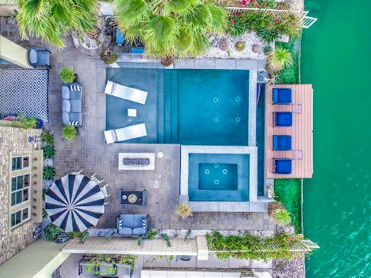 *Luxury Lakeside Retreat with Unmatched Custom Backyard Oasis* One of the highest income producing properties in Terra Lago. This beauty of a home has grossed $220k in verifiable bookings within the last 15 months per financials provided by the property manager. This home is a cash cow that will blow your expectations and be the perfect replacement home for your 1031 tax exchange. If you're a savvy investor and are looking for a winner to supplement your returns, look no further!!Welcome to your dream home, a stunning lakeside sanctuary nestled in the prestigious community of Terra Lago, Indio, CA. This extraordinary property offers one of the best and largest custom backyards on the lake, providing serene views of the iconic European-style bridge and endless shimmering water vistas. With no immediate neighbors behind, you'll enjoy ultimate privacy and tranquility.Step into your private paradise, where a newly designed infinity pool glistens in the sunlight, featuring a luxurious spa that accommodates up to 12 guests, and a breathtaking custom marble waterfall that adds an elegant touch. Beat the desert heat with misters and pool foggers, ensuring comfort all summer long. The expansive backyard boasts multiple seating areas for relaxation, a custom fire pit for cozy evenings under the stars, and a covered patio complete with a bespoke outdoor kitchen, perfect for entertaining family and friends.Inside, the home is nothing short of a masterpiece.