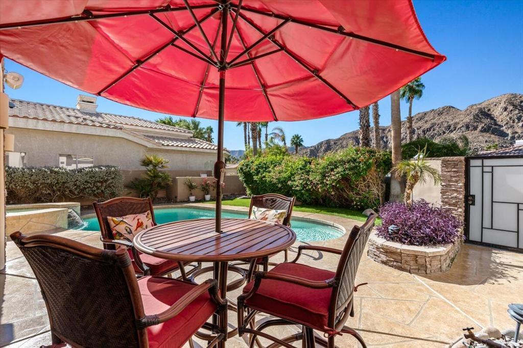 The first impressions can be the best and this house makes a great first impression. The exterior has stacked stone accents and a custom frosted glass gate which opens to front courtyard. See breathtaking mountain views from this private retreat-like patio. Splash or laze in the refreshing saltwater pool or float calmly in the swirling spa. The BBQ island is perfect for outdoor living and dining and the professionally designed landscape includes a putting green! Step into the freshly painted, immaculately maintained, 3 bedroom, 3 full bath, 2133 sq.ft. home. The main bedroom includes a large walk-in custom closet, ensuite bath with dual vanities, shower and soaking tub with an adjacent dual view fireplace. The first guest room has an ensuite bath and walk in closet. The versatile third bedroom can also be used as a den or TV room. A spacious living room has a built-in entertainment center, surround sound system, an additional cozy fireplace and sliding door access to the front patio and pool. The chef's kitchen is well equipped with a center island, walk-in pantry and breakfast bar. See stunning views from kitchen, dining and living areas! .Wood shutters and high ceilings add to the quality of this lovely home. This home also includes joint membership access to two electric boats. Lake La Quinta is a 24-hour guard-gated development with a private lake, community pool, a 3 acre park, Bocci, tennis and pickleball courts. See this exceptional home.