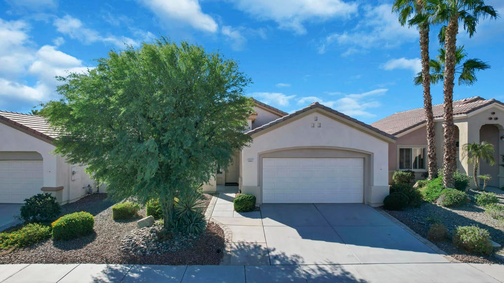 Welcome to your Desert Oasis in Sun City Palm Desert! This beautifully Cayman model home is nestled in the highly desirable, gated Sun City Palm Desert community. Freshly painted this charming residence boasts recently upgraded AC, dishwasher, refrigerator and gas stove, and plantation shutters throughout offering modern comfort and convenience.Step into a bright and inviting foyer, where french doors lead to a versatile room perfect as a den, office, or formal dining area. The great room is open to the kitchen and ideal for entertaining, which seamlessly flows into the expansive south-facing backyard making this your own private desert retreat.The spacious primary suite features direct access to the rear patio and a walk-in closet. An indoor laundry room adds convenience, and the garage comes equipped with ample storage cabinets.Living in Sun City Palm Desert means embracing an active, resort-style lifestyle with access to two championship golf courses, indoor and outdoor pools, fitness centers, and numerous social clubs. Not to mention low $432/month HOA fees that includes a gated community, access to all club programs and facilities, cable TV and internet, along with maintenance of the common areas and amenities.Schedule a tour today and start enjoying the incredible lifestyle this home and community offer!