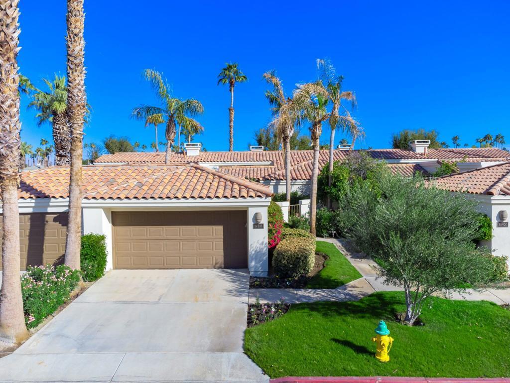 This sophisticated, updated Champion 1 floor plan condo on the Arnold Palmer course at PGA West offers incredible fairway and mountain views, is just steps away from the community pool and spa, has vaulted ceilings, and lots of natural light. The tiled, gated front courtyard creates a perfect space for entertaining or enjoying al fresco dining. The updated kitchen features granite countertops and stainless-steel appliances. Inside you will find 2 spacious bedrooms, including a primary suite with double vanity. Plantation shutters throughout add charm and privacy. The inviting and open great room has a living area, a wet bar, dining space, and an elegant fireplace, ideal for relaxation and gatherings. Step out to the patio to soak in stunning golf course and mountain views. The 2 car garage provides ample storage with built-in cabinets and its own air conditioning. This home in the prestigious community of PGA West is a must see!