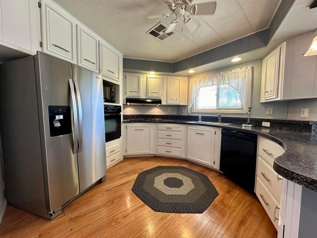 MOTIVATED SELLER! Discover the perfect blend of comfort and convenience in this spacious 1,440 sq ft home, one of the largest in the community! Nestled on a desirable corner lot, this residence boasts a large covered patio, perfect for outdoor relaxation and entertaining. The home features double-paned windows throughout, ensuring energy efficiency and a peaceful interior. Inside, you'll find a well-maintained kitchen with an updated fridge. The home is equipped with four updated mini-split AC units, ensuring optimal comfort in every room. A convenient washer and dryer setup inside the house, an updated water heater, and a storage shed add to this lovely home's practicality. The 55+ community offers a resort-style experience with a relaxing pool area, hot tub, and a clubhouse. Engage in a variety of fun activities and enjoy the numerous amenities. Plus, your water, trash, and sewer are all included in the space rent, making life even more convenient. Don't miss this opportunity to live in a vibrant community with all the modern comforts you deserve, perfect as a year-round or seasonal retirement retreat!