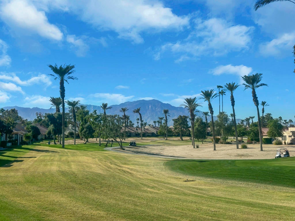 The unit AND the VIEW you have been waiting for! This spacious 2 bedroom, 2 bath remodeled unit has incredible sunset views, yet is not due west. Located at the junction of 2 holes, so the view is panoramic. The very bright living room offers high ceilings and a cozy fireplace. A spacious dining area is just off the opened kitchen with granite counters, custom cabinetry, stainless steel appliances including a gas stove. The bedrooms have a great separation , each with their own remodeled bath. New windows and doors, 2 car garage , private driveway and owned solar panels complete this perfect home. Located in the very popular Resorter with a reimagined clubhouse, 18 championship holes of golf, a very active racquet center with tennis and pickleball. 20 pools and spas. A gated community that is close to El Paseo shopping district, Acrisure Arena, and the Indian Wells Tennis Garden. Short term rentals are allowed in this community. Beautifully furnished and priced to sell.