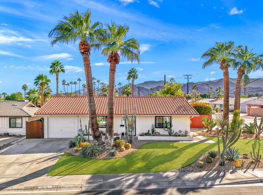 Discover this charming home situated on a desirable corner lot, showcasing beautiful desert chic California landscaping. This pool home boasts numerous upgrades, including a newer electric panel which is solar ready, new flooring and baseboards, and elegant casing around the entry to the living room. The interior has been recently painted, providing a fresh and inviting atmosphere. Both bathrooms have been tastefully upgraded, adding to the home's appeal. The lush backyard offers a private oasis, perfect for relaxation and entertaining. Don't miss the opportunity to own this beautifully maintained home located in the heart of Palm Desert.