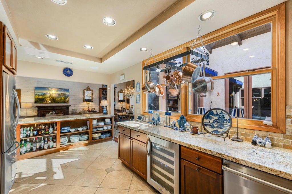 Price REDUCED, Highly sought after Deepwell Ranch. Community has completed multi-million dollar update to landscape, hardscape, street drainage and road paving. Private walkway leads to new Rainwater glass front door. Enter the elegant open dining and living room featuring new and antique crystal chandeliers. The ceiling height soars to 14' with original wood beams. The dining area boasts floor to ceiling bookcase to create your own statement. The chef's kitchen has been updated with a 2023 blue Viking range and dishwasher, exceptional workspace, storage, granite countertops, stainless steel appliances, farmhouse sink, custom wood cabinets and four seat breakfast bar. A large interior atrium with new awning offers additional private outdoor seating. There are three bedrooms. The smallest has dual purpose as an office with new queen size built-in murphy bed. The adjacent bedroom functions as a family room with access to atrium. Guest bath has copper fixtures and new paint. The primary has a loft space to display pottery or art. A gas fireplace is shared with living room. Primary bath features copper fixtures with new faucets and excellent shower pressure and heat. California closets offer tremendous space with electric for mini coffee bar. This home has the largest mountain view patio in Deepwell Ranch. Newer HVAC 2022, custom shades in LR/BR and study. Best deal in Deepwell!