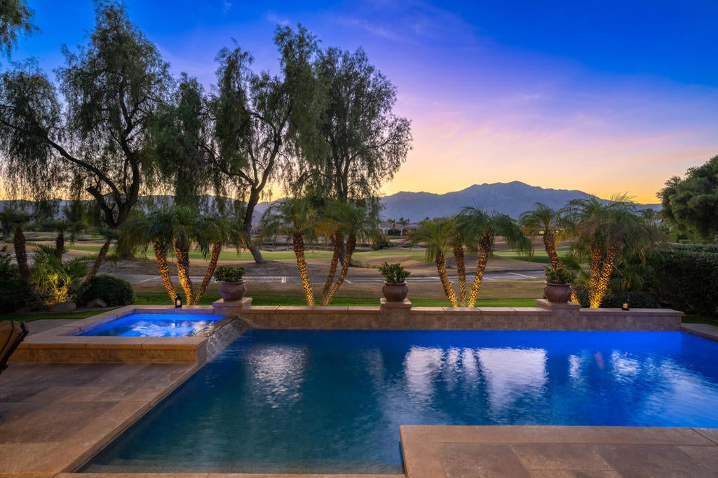 Enjoy Breathtaking views from this stunningly updated residence in the prestigious guard-gated golf course community of Mira Vista at Mission Hills. This home offers a prime double fairway location capturing the beauty of San Jacinto Mountains, water features and the surrounding golf course greenery. Designed to impress, the property features an elegant, open-concept floor plan with large windows and high ceilings that fill the space with natural light. The interior has been thoughtfully upgraded with modern finishes that balance comfort and luxury. The spacious living areas flow seamlessly, highlighted by a spacious kitchen with stainless steel appliances, custom cabinetry and a large island perfect for entertaining. The master suite offers an expanded retreat perfect for an office, a walk-in closet, and a redesigned shower. There are also 2 guest suites with a Remodeled bathroom and a stylish powder bathroom. Step outside to a private backyard oasis, where a sparkling pool and spa await, framed by lush landscaping and overlooking the sweeping fairway and mountain views. The outdoor space is ideal for enjoying the perfect weather, with ample seating areas, a covered patio with motorized awning and a fire pit ideal for gathering around during crisp desert evenings. For maximum efficiency this home is equipped with an owned solar system, new AC units and an AC unit in the garage. The owners have spared no expense creating this perfect desert retreat.