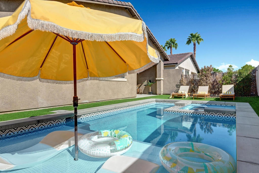 Welcome to 82785 Freeman Court, located in the prestigious Indian Palms Country Club and approved for Airbnb/VRBO. This fully furnished 3-bedroom, 2.5-bath home is perfect for hosting family and friends. Upon entering, you'll be greeted by a bright and airy atmosphere. The open-concept kitchen seamlessly connects to the dining and living areas, leading out to a backyard designed for entertaining, complete with a pool and covered patio.The primary ensuite boasts a custom wall feature and a large picture window that provides both privacy and natural light. This suite is further enhanced by a dual vanity, a walk-in shower, and a spacious closet. A large laundry room with ample counter space is conveniently located at the end of the hallway near the bedrooms. The second bedroom features an attached full bathroom with a soaking tub. Step outside to enjoy your private pool, perfect for warm summer nights with its custom Baja shelf and chairs. The Pentair equipment is top-of-the-line and offers remote functionality. Additional features of this home include a 2-car attached garage, a designated golf cart garage, a drip system throughout the backyard, a tankless hot water heater, keyless entry, and a keyless owner's closet. This property is also qualified for use as a short-term rental (STR). The HOA provides access to a fitness center, tennis courts, community pools, and a full-service bar and restaurant. Plus, you'll be within walking distance to the polo and festival grounds.