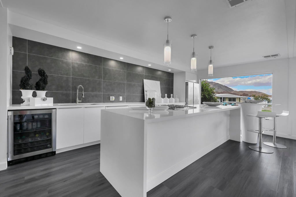 This incredible home is situated just across from the Clubhouse, pool,& spa! It's also sits at the edge of the beautiful greenbelt with wonderful views of the San Jacinto Mountains and is open to the greenbelt along one entire side plus all across the rear. Two large picture windows face the greenbelt offering stunning mountain vistas and views of the valley floor in the distance. Complete remodel, sleek, clean lines, super modern & immaculate. Completely open floor plan! The focal point of the great room is a stunning new kitchen with white cabinetry and quartz counters plus boasts an 11 Ft. Island with seating! Rich Gray Vinyl floors offer a stunning contrast. Beautiful new bathrooms plus a gorgeous free-standing soaking tub in the master bath-Pamper yourself in luxury!!! This home is impeccably remodeled from top to bottom! ! Brand New Roof & Carport!!! Owned Solar!!! Call for showings- Owner Occupied with Pets. Please do not disturb.