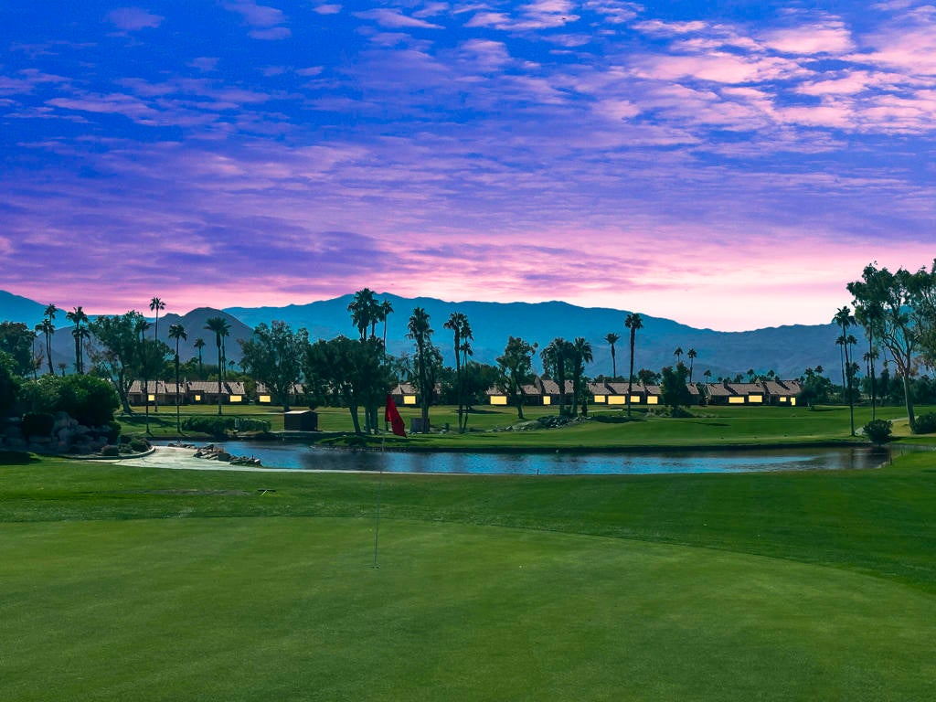 Fabulous remodeled south facing 2 bedroom, 2 bath unit, located on the 18th green. The living room separates the bedroom suites. The kitchen is fully remodeled with leather type stone counter tops, custom cabinetry and stainless steel appliances. Both baths are remodeled. New windows and doors. New lighting. 2 car garage. Newer hot water heater, new Bosch refrigerator. No expense spared in maintaining this unit. All furnishings were purchased for this unit. Located in the very popular Palm Desert Resort with 18 holes of golf, practice facilities, a reimagined clubhouse, racquet center with pickle ball and tennis, 2 bocce ball courts, . Short term rentals are allowed here. This unit is offered fully furnished and is price to sell.