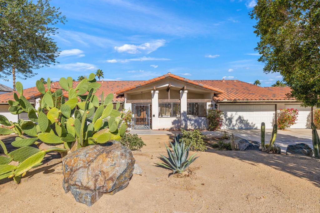 Welcome Home! Immaculate and beautifully designed custom-built estate on one of the best streets in highly coveted south Palm Desert. Enjoy the fabulous views of the valley floor all the way to the hills of Joshua Tree from the back terrace and even take in your own private fireworks show. You will also note the stunning mountain views in all directions with NO powerlines to mar your view. Built in 1986 this home offers a spacious, open floor plan with vaulted wood beamed ceilings in both the formal living room and family room, a large chef's kitchen and expansive formal dining room with built-in wet-bar. There are 3 guest bedrooms (one currently being used as an office), two are ensuite, plus a luxurious master retreat. Nestled on one of the largest lots on the street, this property also includes a large, sparking pool and spa, room for a pickle-ball court or ADU, RV parking, tons of storage and a 3-car garage. Please call for an appointment today to view this well maintained and very special property.