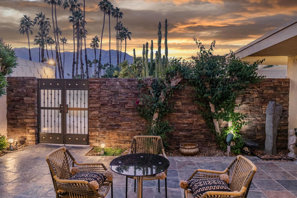 Experience the charm of mid-century modern living in this exquisite 2-bedroom, 2-bath home, designed in 1967 by renowned Palm Springs architect Richard Harrison. Nestled within the prestigious Seven Lakes Country Club, this home is ideally located on one of just four serene interior cul-de-sac streets, offering ultimate tranquility. Step outside to enjoy breathtaking mountain views and the home's prime location on the 7th fairway. A heated pool is just steps away, making it perfect for relaxation and entertaining. This property blends timeless design with an unbeatable setting in the heart of Palm Springs. Seven Lakes Golf and Country Club provides an impressive array of amenities, including 15 pools and spas, a lively clubhouse designed by William Cody, and a par 3 and 4 executive golf course designed by Ted Robinson. With amazing views in every direction, this community is a visual masterpiece and offers a unique lifestyle for its residents.