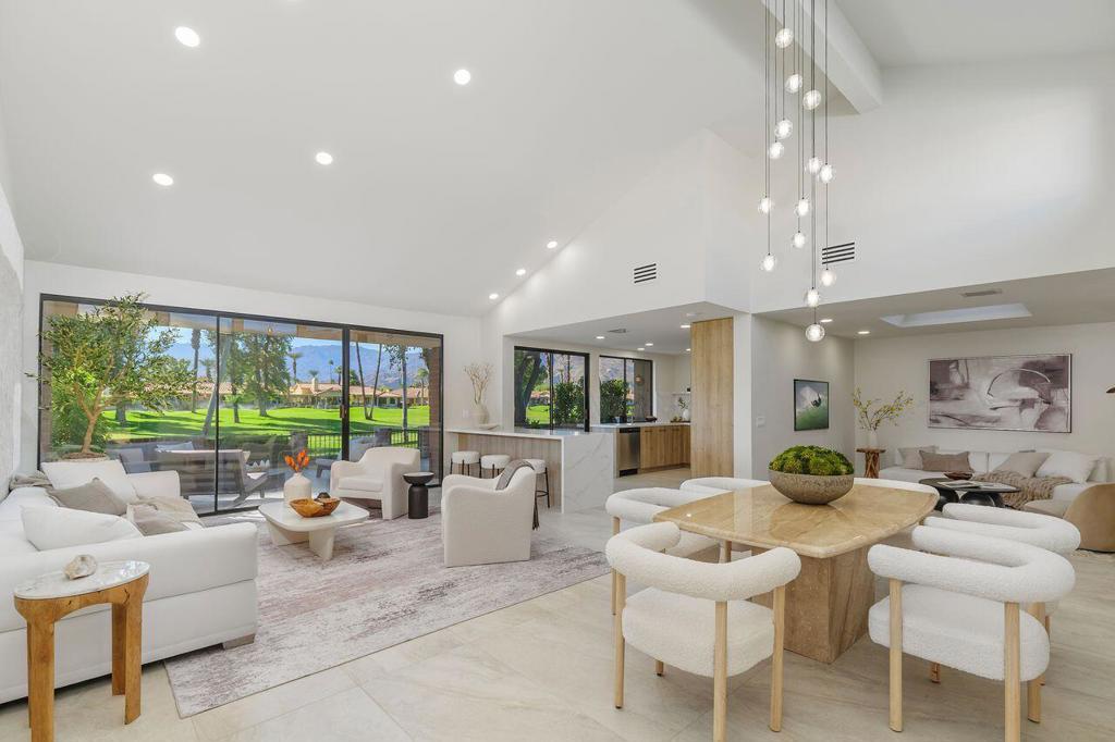 No expense has been spared on this completely reimagined 3-bedroom, 2-bathroom home plus office located in Monterey CC. This home features high-end finishes and offers an open floorplan with a spacious great room. The gourmet kitchen boasts gorgeous quartz countertops and backsplash, custom cabinets with ample storage, and stainless-steel appliances. The great room features vaulted ceilings, designer lighting, and walls of glass that open to a large tiled patio with stunning golf, mountain, and water feature views. The primary suite includes a luxurious bathroom with a large walk-in shower, towel warmer, floating vanities, and porcelain sinks. Other features include stylish 42''x42'' porcelain tile flooring throughout and fully remodeled bathrooms with new wall-to-ceiling tiled showers, floating vanities, and porcelain sinks. The patio also has stylish 42''x42'' porcelain tile and offers amazing mountain, lake, and golf course views. Monterey CC is an upscale, 24-hour guard-gated community with social amenities including a 27-hole championship golf course, 14 tennis courts, 20 pickleball courts, 4 bocce ball courts, a fitness center, and 37 pools and spas. This property has been staged by Fix Interiors (FixInteriors.net).