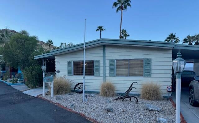 PRICE DRASTICALLY REDUCED TO SELL QUICKLY AT $129,750! SELLER VERY MOTIVATED! Panoramic mountain views at a great low price. Rent-controlled leased land. Not Indian Land. Step into comfort and convenience with this spacious double-wide manufactured home in a welcoming 55+ community. This charming home is perfect for enjoying a relaxed lifestyle in a prime location on a peaceful cul-de-sac. It is designed for easy living with two generously sized bedrooms and two bathrooms, an open-concept living and kitchen area, granite countertops, beautiful custom-tiled flooring in the kitchen and hallway, and carpet in the living room and bedrooms. The 2022 HVAC system is just one of the upgrades to this home; it also includes an evaporative cooler. Located in a vibrant community with a range of amenities and social opportunities, you'll love the lifestyle this home offers in Palm Springs. LOW LOT RENT. Don't miss out on this gem --your new home awaits!