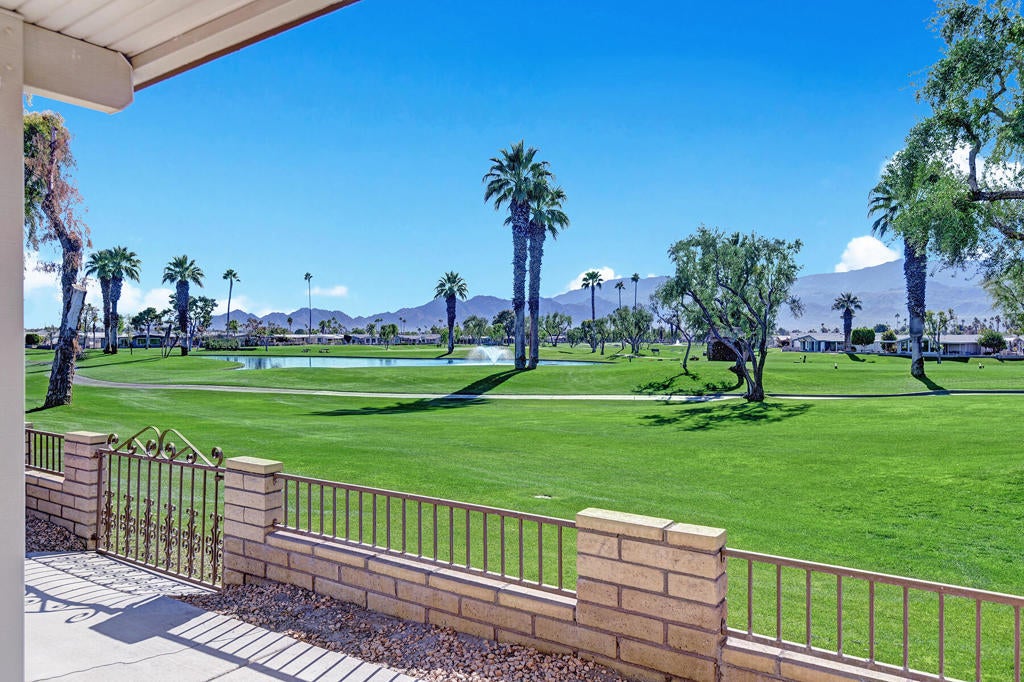 Welcome to your dream retreat at 73599 Oak Flats Drive in the beautiful Palm Desert Greens community. This charming home was built in 2007, and offers a delightful blend of comfort and style. With two well-sized bedrooms and two bathrooms, this gem is move-in ready and perfect for those seeking a serene escape. Step inside to discover updated flooring and freshly painted walls that give the home a 'like new' feel. The open layout seamlessly connects the living spaces, making it ideal for both relaxation and entertaining. The huge double garage also has a golf cart entrance from the golf course side so you can zip right in and out when headed to the clubhouse. However, the real showstopper are the Panoramic South-Facing Views of the Golf Course, Water and Mountains in the backdrop, capturing the best of the desert in one vista! The great room and outdoor patio both provide ample space to enjoy the home however you wish, while framing the views perfectly. Whether you're a golf enthusiast or simply love the tranquility of nature, this property has it all. Don't miss the opportunity to make this delightful home yours and experience the best of Palm Desert living.