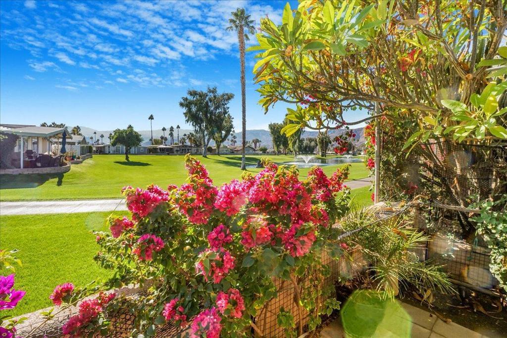 Fabulous remodeled view home in gated 55+golf community. New CAC,newer roof,attached garage!. This 1800+3Br has been lovingly remodeled with the eye of an artist for both quality & visual aesthetics. Bamboo floors, high ceilings throughout with recessed lighting give the home a very open & welcoming feel. The LR boasts a flagstone fireplace flanked by custom floating shelves. Enjoy abundant southern light & views from the beautiful dual-pane windows across the entire front of the LR,DR & kitchen.Remodeled gourmet kitchen for entertaining & sliding doors leading to your ''Alfresco'' dining. There is a bonus Studio for art, gardening or hobby projects. The primary BR has a large walk-in closet, & a dream bathroom with custom dual vanity & spacious tiled shower with seating & double shower heads.Guests will enjoy their remodeled bath as well. The laundry room leads directly into the garage with workshop, sink, storage & included golf cart!New Assumable Solar Lease ,permanent foundation .Portola CC is a 55+Active lifestyle with 18-hole-part-3 golf, clubhouse, 3 pools,pickleball & bocce courts included in a low HOA fee. Your Own Your Land as well. Close to El Paseo's Restaurants & shops & nearby Eisenhower Hospital. Surrounded by gorgeous mountain vistas- See what Portola CC has to offer!