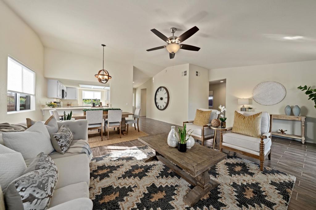 You CAN afford this house! Seller will consider up to $10,000 credit to buyer for interest rate buy down with accepted offer. Beautifully updated and remodeled, this residence is nearly 1,700 square feet in size, almost 20 percent larger than the typical three bedroom, two bathroom Cove home. That makes it ideal for your growing family, with plenty of space in the bedrooms and great room. Featuring newly installed real tile floors in every room, with a rich wood look that conveys elegance, yet is so easy to maintain. The kitchen has brand new, never used stainless steel appliances and kitchen sink, brand new quartz counter tops and newly painted wood cabinets. The entire interior has been freshly painted in a warm, neutral shade. All mechanical systems are in excellent condition, with a newer AC unit. The backyard features a newly planted sod lawn and landscape plants. It is fully fenced, and cross-fenced for the safety and enjoyment of your children and pets. This is the new must-see listing in the Cove. Finalmente, la casa en La Quinta Cove que usted y su familia estaban esperando! La cocina cuenta con electrodomesticos de acero inoxidable y fregadero nuevos, nunca usados, encimeras de cuarzo nuevos y gabinetes de madera recien pintados. Con pisos de baldosas reales recien instalados en cada habitacion, con una rica apariencia de madera que transmite elegancia y, al mismo tiempo, es muy facil de mantener.