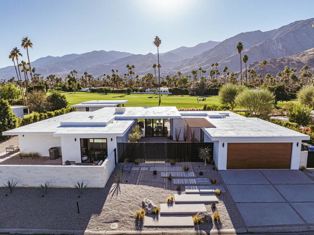 THE trophy property of the 2024/2025 season. Almost entirely new construction, with breathtaking southern and western views. Located within Indian Canyons, one of the most sough-after neighborhoods of Palm Springs. This spectacular re-creation of a midcentury golf course estate was originally built in 1963 by developer Boris Gertzen and architect Ken Burgess. Gertzen, who also developed much of the neighborhood, hand-selected this lot for his own daughter by virtue of its location, larger size, elevation and views. In 2024 LA based HOLDING 44 Development completed a full re-design and re-imagination of this stunning property. Today, sitting proudly on an elevated lot, this 5 bedroom 7 bath compound features a long list of upgrades, including 10' moveable glass walls, tongue and groove ceilings, pocketing glass which connects indoor and outdoor dining, high-end appliances, networked Lutron lighting system, a new-construction detached guest house with kitchenette and its own laundry, brand new oversized resort-style pool with tanning shelf and 10-person spa. A complete list of upgrades is available upon request. Custom furniture is available for separate purchase. Truly like nothing else on the market. Call today for private showings.