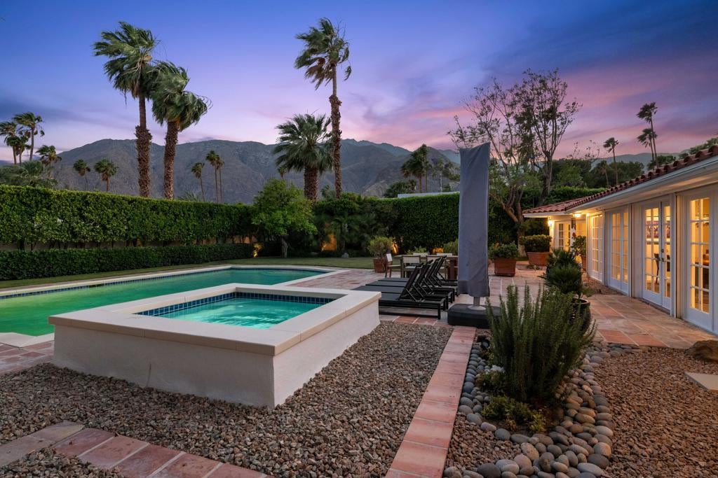Check out this Little Tuscany/Vista Las Palmas Estate!! Just behind the private gate sits a thoughtfully renovated home. The owners of this immaculate property have spared no details and offers a harmonious blend of modern elegance and timeless spanish mid-century charm. The main home features 3 spacious bedrooms and 4 beautifully appointed bathrooms, each designed with high-end finishes and attention to detail.An additional detached studio/bedroom casita provides flexibility for guests, a home office, or a private retreat. Step outside to your expansive outdoor living space, where breathtaking, unobstructed views of the Santa Jacinto Mountains serve as the perfect backdrop for relaxation or entertaining. The property showcases a seamless indoor-outdoor flow, with french doors leading to a sparkling pool, spa, and lounging areas drenched in sunlight. A truly private oasis perfect for any homeowners needs or vision. Among the numerous renovations the property comes with A new 32 panel paid off solar system, new HVAC systems, new electrical panel, new gas lines throughout, tankless water heater, hurricane shutters and the list is endless. Located minutes from the best dining, shopping, and entertainment Palm Springs has to offer, this home is a true gem in a premier location. Don't miss this opportunity to own a piece of paradise!(Kitchen Renderings in Documents)