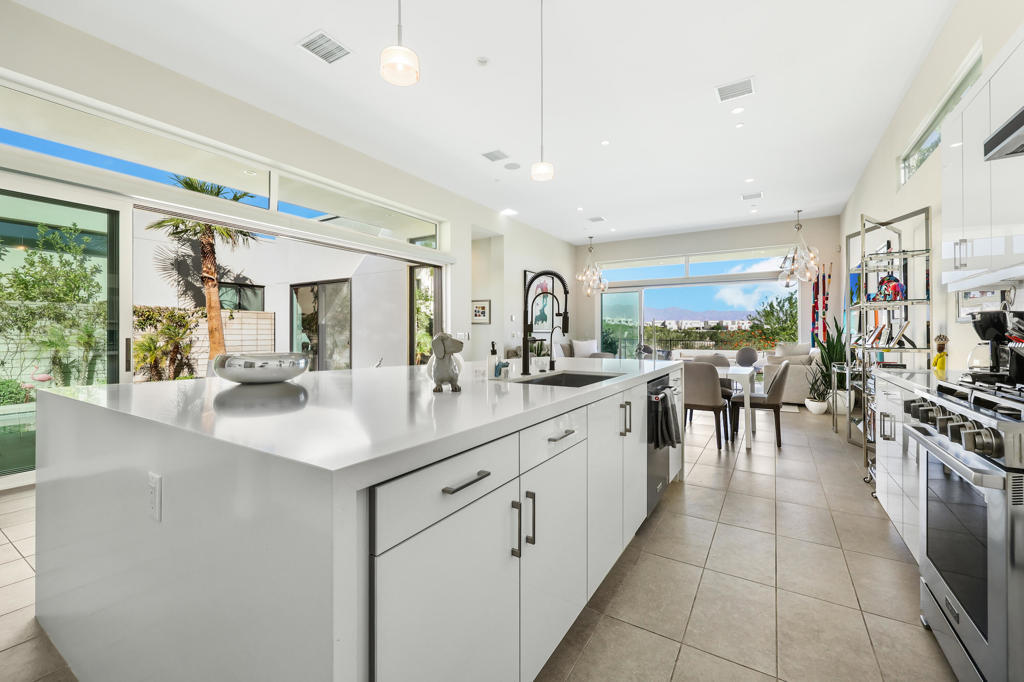 Panoramic views, a private pool and a virtually endless array of preferred upgrades are merely the beginning of all that you will enjoy at this exquisite residence in Palm Springs' Miralon community. The guard-gated enclave offers a 5-star resort experience complete with a lux clubhouse, pools, spas, lakes, a state-of-the-art fitness center, BBQ pavilion, full-service cafe, dog park, trails, bocce ball and a u-pick garden. At home, the single-level floorplan was built as a model and is offered fully furnished, making it anextraordinary turnkey opportunity. Approx. 2,084 s.f., the three-bedroom, four-bath design welcomes natural light through an abundance of windows and two sets of slide-away glass doors, creating an indoor/outdoorvibe that enhances daily living and chic entertaining. A great room-style arrangement seamlessly blends a family room with view patio and a private courtyard with pool and after-swim shower. Ceilings soaring to 12feet crown the space, which also includes a large dining area and a chef-caliber kitchen with quartz countertops, dual-waterfall island with bar seating, high-gloss white cabinetry, and new top-tier stainless steel Dacor appliances. Baths boast custom tilework and floating vanities, frosted-glass wardrobe doors are featured in secondary bedrooms, and the attached two-car includes an EV charger. Opulence is redefined in a primary suite with pool access, a walk-in closet, two sinks and a walk-in shower. See attached list of upgrades!!