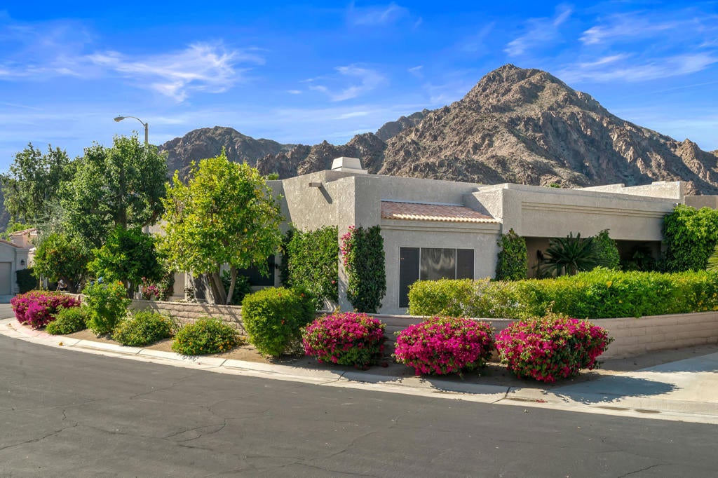 Located in one of the most picturesque, yet moderately priced communities in the desert in Laguna de La Paz, this south-facing corner lot property is ready for a new owner to make it their own. Boasting the largest floor plan in the development, this residence is a great option for those looking for part-time or full-time living, and has a very spacious courtyard area to entertain and enjoy the inside/outside desert lifestyle. Additional attributes include: large, separated primary bedroom with convenient access to the exterior, well-sized walk-in closet, and sizable ensuite bathroom; two roomy guest bedrooms close by to a full guest bathroom; true two-car garage, and a welcoming kitchen with plenty of counter space, stainless steel appliances, stone counters, and breakfast nook area. Laguna de La Paz is a guard-gated community that offers its residents many amenities to enjoy while surrounded by the beauty of the nearby mountain vistas: over 15 pools and spas, a massive 5 acre lake that you can use a paddle boat on or even 'catch and release' fishing in, tennis and pickleball courts, a social clubhouse offering activities and clubs to join; walking paths, and an equipped fitness center. while just Minutes to Old Town La Quinta and the La Quinta Resort.