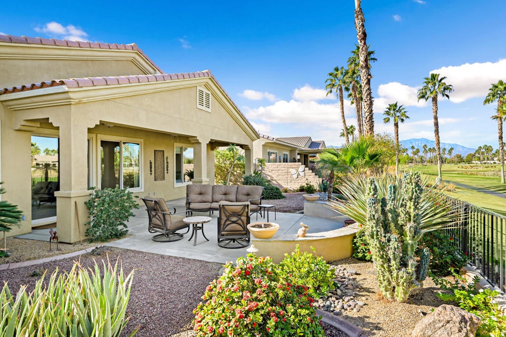 Nestled in the highly sought-after Sun City Shadow Hills premier 55+ resort-style community is this meticulously maintained Avalino floor plan with 1,763 sq ft residence. Thoughtfully designed with 2 bedrooms, 2 baths, and a versatile den that can be used as a home office, hobby room, or guest space, this home has it all. Step inside to discover a light-filled open floor plan that seamlessly blends comfort and elegance, creating the perfect setting for entertaining or relaxing. The kitchen is a culinary delight, featuring gleaming stainless steel appliances, including a double oven, striking granite countertops, and stylish pendant lighting above the spacious island. The owner's suite is your private retreat, complete with picturesque golf course and mountain views, a luxurious en-suite bath with dual vanities, a soaking tub, and a generously sized walk-in closet. Step outside to your beautifully landscaped backyard, where panoramic views of the golf course and mountains provide the ultimate backdrop for outdoor living. Whether sipping your morning coffee or hosting evening gatherings, this space is perfect for enjoying the serene desert beauty. Living in Sun City Shadow Hills means access to world-class amenities, including two championship golf courses, state-of-the-art fitness facilities, a vibrant clubhouse, and a calendar full of activities and clubs tailored to your interests. Don't miss the chance to own this exceptional home in a welcoming and active community.