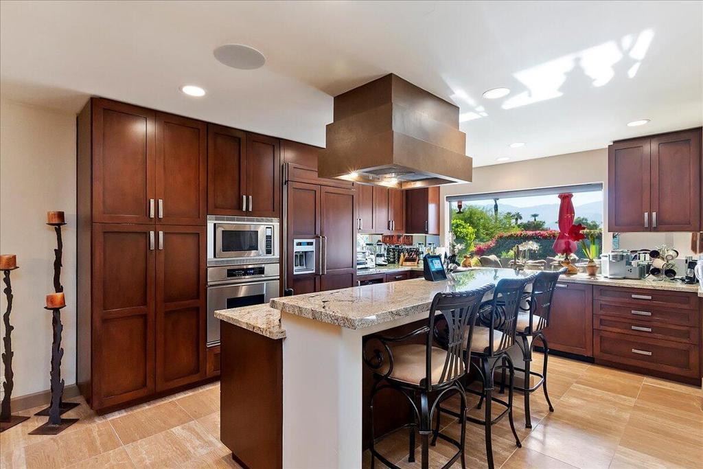 SHOWCASE OF CHAPARRAL! LOCATION, SOLAR & TURNKEY! A custom designed 5-star home by well know designer Steven de Christopher combines spectacular panoramic southern mountain views with privacy, comfort and meticulous attention to detail. This entertainer's dream offers a totally redesigned and expanded floorplan with exquisite beamed ceilings unique in the development, giant picture window entry, large travertine floors, a spectacular accent fireplace wall, gourmet kitchen with large island surrounded by beautiful custom hardwood cabinetry, built in wine cooler, gas cooktop all basking in the natural light from the huge kitchen picture window. This magnificent open concept living area flows seamlessly onto the spacious tile patio with privacy wall, space heater and ample comfortable seating. Each bathroom has been upgraded with matching tile, large walk-in showers, gorgeous granite counter tops, refinished ceilings, recessed lighting and new toilets. No feature overlooked; upgraded window treatments throughout, water softener, atrium converted into a den/3rd bedroom, living room, bedroom and dining room ceiling fans. Newer A/C, FAU and water heater with high-efficiency dual pane windows and sliders complete this feature rich residence. This home has it all - bright, inviting and well appointed... Located in the heart of Palm Desert, Chaparral offers golf, 21 pools, tennis, pickle-ball, gym, activity center and a remodeled clubhouse with world-class dining and entertainment