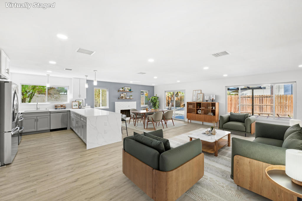 $40,000 PRICE CUT! Located in the desirable Desert Park Estates neighborhood of Palm Springs, this extensively remodeled home is a true desert gem! Featuring an open floorplan with lots of natural light and a charming brick fireplace, this home offers both style and comfort. The modern kitchen boasts new cabinetry, quartz countertops, a breakfast bar, and sleek LG appliances. Bathrooms showcase elegant glass-enclosed showers and ceramic tile. Luxury vinyl flooring flows throughout, complemented by recessed LED lighting, new doors, updated hardware, and fresh interior and exterior paint. Outdoors, enjoy a spacious corner lot with mountain views, a covered patio, new gravel desert landscaping, and corrugated aluminum fencing. There's also ample space to add a pool and spa. Additional upgrades include a new garage door and opener. The home also includes a leased solar system, offering energy efficiency. A must-see!