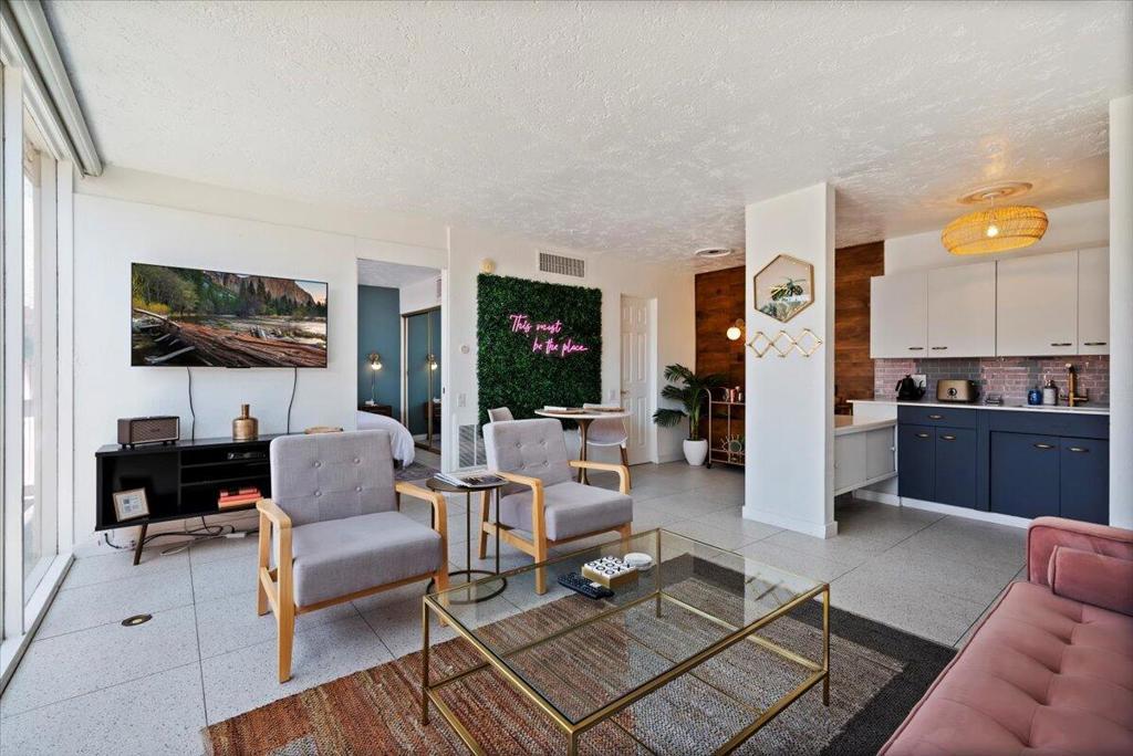 Welcome to Ocotillo Lodge in Palm Springs! This iconic building was built by the Alexanders in 1957 and designed by architects William Krisel and Dan Palmer. The hotel was purchased in 1963 by Gene Autry and from 1968 to the 1990's Jerry Buss (owner of LA Lakers) was the owner and operator. The Ocotillo Lodge was converted to condos in 1995. This condo is on fee land (you own) in close proximity to downtown Palm Springs. The HOA includes community landscape, all utilities (electric, water), wi-fi,internet, trash, cable, pool/spas and clubhouse including gym. The pool is shaped like a champagne cork and there are plenty of lounge chairs and umbrellas to enjoy. Short term rentals allowed with permit from Palm Springs City. The Mills Act is approved for this building so you may qualify for tax reduction.