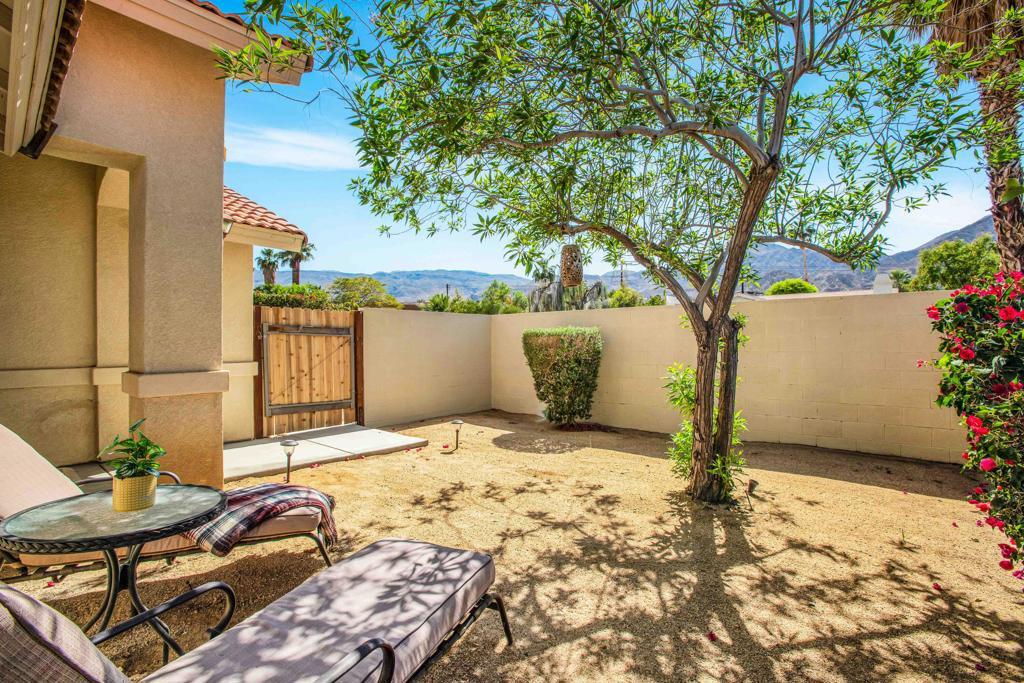 Located on the quiet upper east side near the top of La Quinta Cove, this custom-built 4-bedroom, 2-bath home offers sweeping mountain views, a petite pebble tec pool, and thoughtful updates throughout. Currently configured as 3 bedrooms with a formal dining room, the home was originally built as a 4-bedroom and can easily be converted back. Interior features include fresh paint, updated lighting, granite kitchen countertops, abundant cabinetry, a large pantry, and a cozy fireplace. The fully paved backyard includes a fire pit, mature pygmy palms, gravel planting areas with an installed sprinkler system, and a new fence--offering privacy and room for your own landscape design. The elevated even-numbered lot sits just one house from the corner, with a double-lot neighbor behind, giving you rare, unobstructed open-sky views.