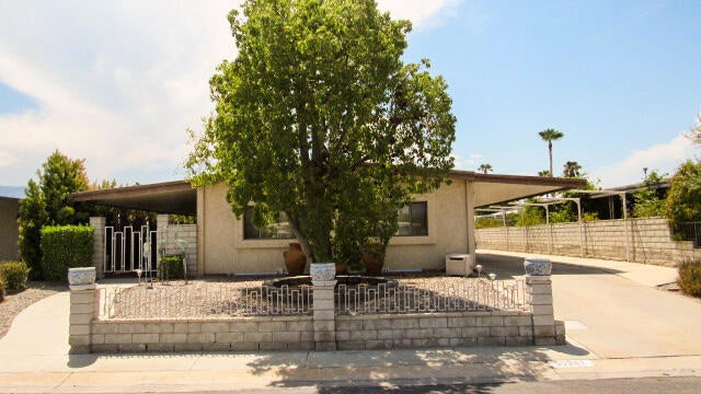 This home is ready for you to move in and start enjoying! Great low price on a well-maintained home in Palm Desert Greens Country Club which is close to the clubhouse. Enter into the Great Room which feature a long kitchen island opening into the living and dining area. 2 skylights brighten up the kitchen as does the two large picture windows in front. The large master suite has a sliding door leading out to the patio and features as walk-in closet. The guest bedroom is across the hall from the guest bathroom and has a tub- shower combination. This home has drywall on the inside and stucco on the outside. The spacious front patio leads out to a natural gas hook up for a BBQ and a large storage shed. The Carport has been widened with spider legs and also has a large shed. Create your own oasis with this open floor plan great for entertaining or just relaxing after playing golf for free with ownership! Enjoy the swimming pool, exercise room and full-time restaurant just down the road at the Clubhouse!