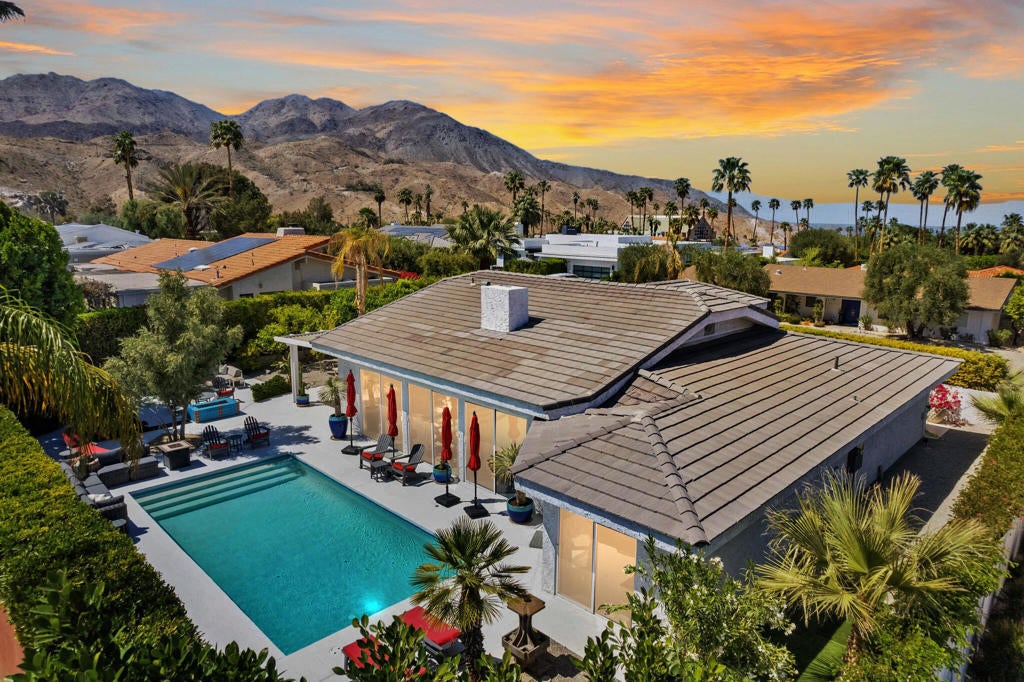Mid Century Modern, extensively remodeled designer home in South Palm Desert!!!This home offers the newest technology many systems can be controlled by your smart phone. Grand formal entry leading to open floor plan with designated areas for kitchen dining and living room. Entire room has a wall of glass doors to bring the outside in! Oversized white porcelain tiles allow for glamour and continuity throughout the home. Floor to ceiling original brick fireplace lends another Mid Century touch. Gourmet kitchen with high end stainless appliances, new cabinets, sink and disposal. Oversized Master suite with an additional attached room for an office or sitting area features a beautifully remodeled high end bathroom. Additional bedrooms host outdoor patios for privacy and enjoyment. Private outdoor living area includes Pebble Tec pool salt water pool, gas fire pit, outdoor lighting, lush landscaping including fruit trees and mountain views. No HOA and close to El Paseo! This house has it all!
